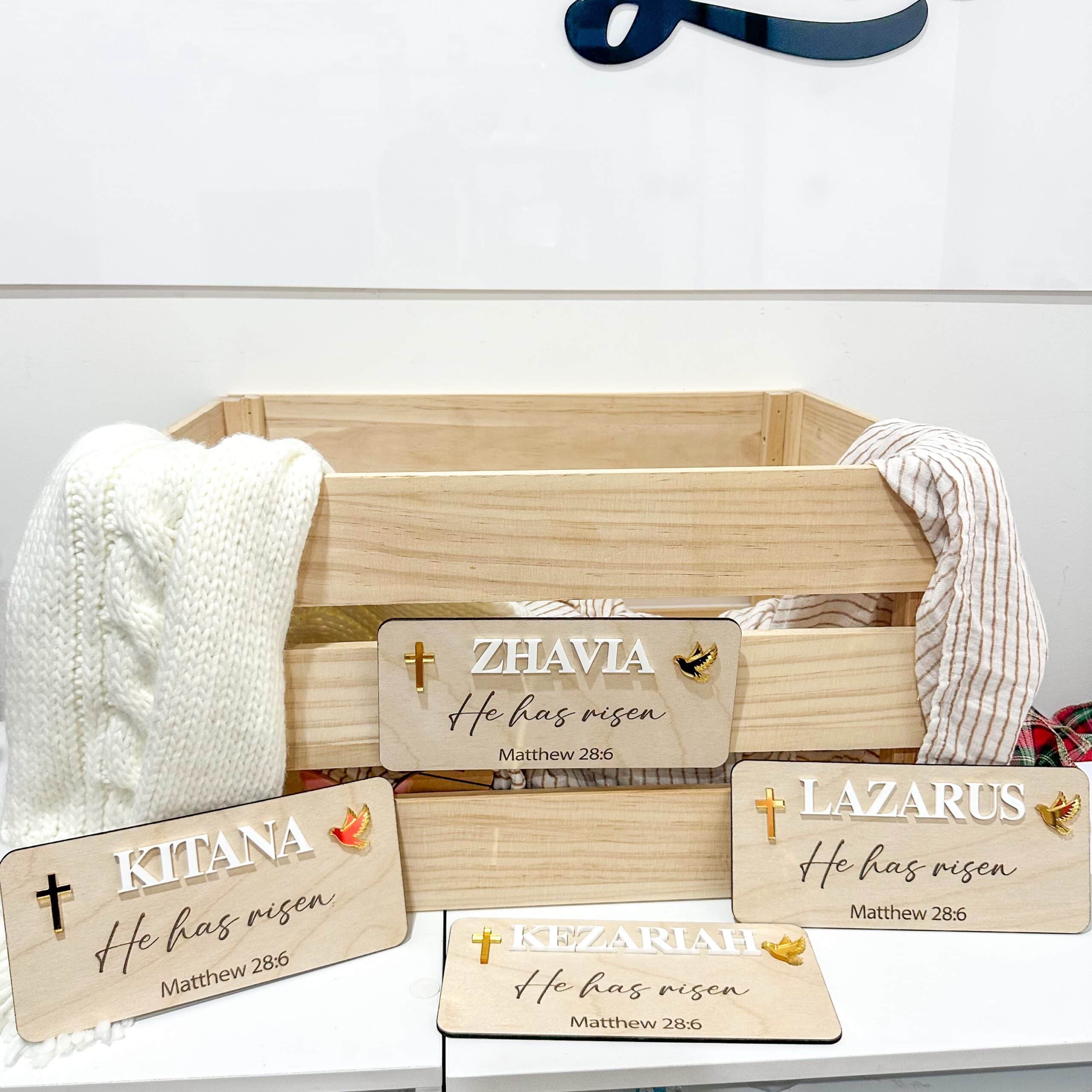Personalised He Has Risen Easter Crate Plaque | Christian | Gold Cross & Dove Acrylic Plaque